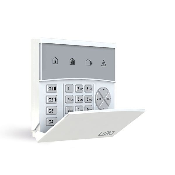 K-LARIO არის უსადენო კლავიატურა, რომელიც თავსებადია Lario-ს სისტემასთან. მას აქვს 4 LED ინდიკატორი სისტემის სტატუსის და გაუმართაობების საჩვენებლად. იკვებება 3 AAA ელემენტით, ან გარე 12 ვ დენის წყაროთი. მახასიათებლები: - LED ინდიკატორები - 3 AAA ელემენტი