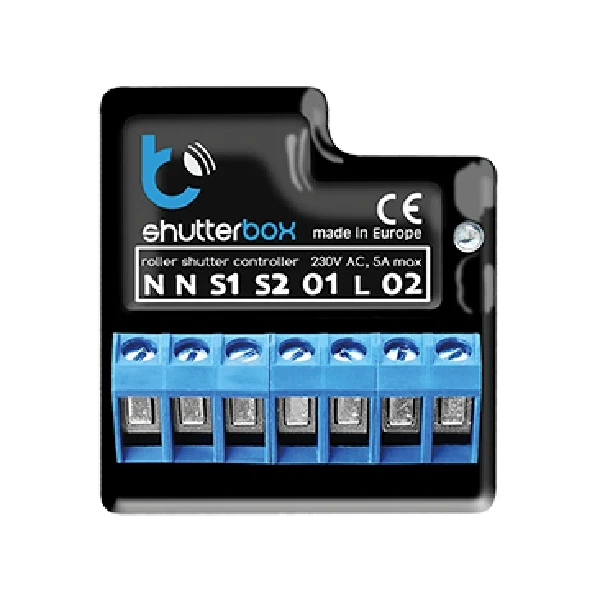 shutterBox არის WiFi კონტროლერი, რომელიც განკუთვნილია 230V ძაბვაზე მომუშავე როლეტების, ფანჯრის გამღებების, მარკიზებისა და ეკრანების დისტანციური მართვისთვის. მოწყობილობას გააჩნია Amazon Alexa-სა და Google Home-ის ხმოვანი ბრძანებების მხარდაჭერა. კონტროლერი მ