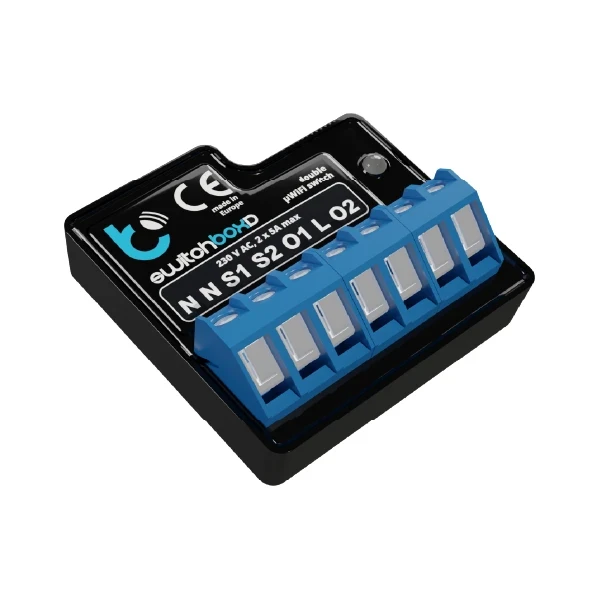 switchBoxD არის ორარხიანი WiFi კონტროლერი, რომელიც საშუალებას გაძლევთ დამოუკიდებლად მართოთ ორი სხვადასხვა ელექტრომოწყობილობა. მოწყობილობა აღჭურვილია ენერგიის მოხმარების გაზომვის ფუნქციით, რაც საშუალებას გაძლევთ აკონტროლოთ ელექტროენერგიის ხარჯი რეალურ დროში
