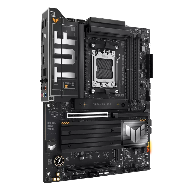 ASUS TUF GAMING X870-PLUS WIFI იყენებს უახლესი AMD Ryzen™ პროცესორების ყველა აუცილებელ ელემენტს და აერთიანებს მათ თამაშებისთვის მზა ფუნქციებთან და დადასტურებულ გამძლეობასთან. სამხედრო დონის კომპონენტებით, განახლებული კვების სისტემით და ყოვლისმომცველი გაგრილების სისტემით შექმნილი ეს დედა დაფა აჭარბებს მოლოდინს მარათონული თამაშებისთვის უნაკლო და სტაბილური შესრულებით. TUF GAMING დედა დაფები ასევე გადის მკაცრ გამძლეობის ტესტირებას იმის უზრუნველსაყოფად, რომ მათ შეუძლიათ გაუმკლავდნენ ისეთ პირობებს, სადაც სხვა დედა დაფები შეიძლება გაუმართაობის გამო იყოს. ეს პლატფორმა უზრუნველყოფს სიმძლავრეს და კავშირს, რასაც მოწინავე ხელოვნური ინტელექტის მქონე კომპიუტერული აპლიკაციები მოითხოვს.