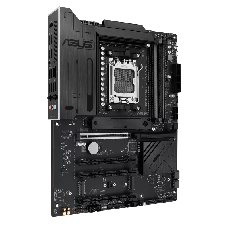ASUS X870 სერიის დედა დაფები ექსპერტულად არის შექმნილი AMD Ryzen™ 9000 სერიის პროცესორების სრული პოტენციალის გამოსავლენად. ძლიერი ენერგომომარაგების დიზაინით, ყოვლისმომცველი გაგრილების გადაწყვეტილებებითა და ინტელექტუალური რეგულირების ვარიანტებით, X870 MAX GAMING WIFI7 დედა დაფა მომხმარებლებსა და კომპიუტერის შემქმნელებს სთავაზობს მუშაობის ოპტიმიზაციის ფართო სპექტრს ინტუიციური პროგრამული უზრუნველყოფისა და firmware-ის ფუნქციების მეშვეობით. ის შექმნილია როგორც მოწინავე ხელოვნური ინტელექტის მქონე კომპიუტერისთვის მზად, რაც გთავაზობთ ენერგიას და კავშირს, რაც საჭიროა მომთხოვნი ხელოვნური ინტელექტის აპლიკაციებისთვის.
