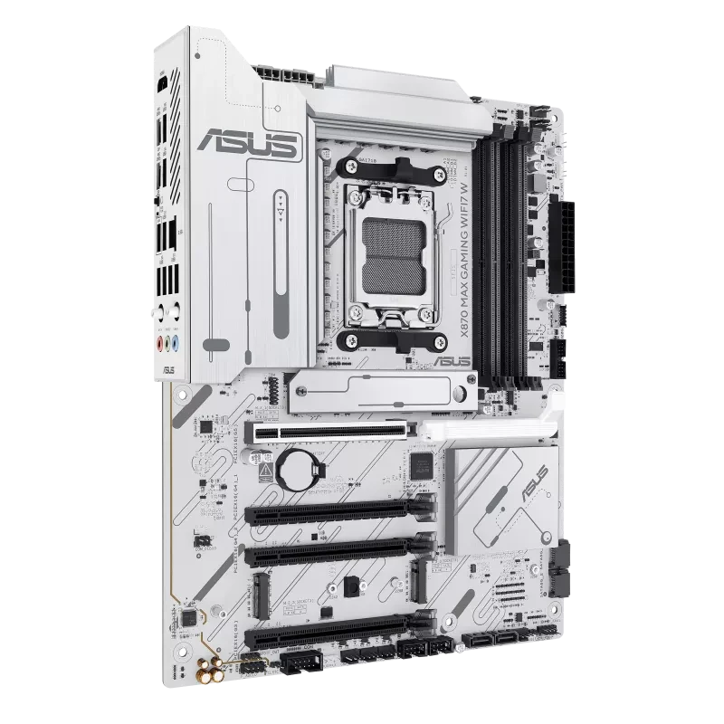 ASUS X870 სერიის დედა დაფები ექსპერტულად არის შექმნილი AMD Ryzen™ 9000 სერიის პროცესორების სრული პოტენციალის გამოსავლენად. ძლიერი ენერგომომარაგების დიზაინით, ყოვლისმომცველი გაგრილების გადაწყვეტილებებითა და ინტელექტუალური რეგულირების ვარიანტებით, X870 MAX GAMING WIFI7 W დედა დაფა მომხმარებლებსა და კომპიუტერის შემქმნელებს სთავაზობს მუშაობის ოპტიმიზაციის ფართო სპექტრს ინტუიციური პროგრამული უზრუნველყოფისა და firmware-ის ფუნქციების მეშვეობით. იგი შექმნილია როგორც მოწინავე ხელოვნური ინტელექტის მქონე კომპიუტერისთვის მზად, რაც გთავაზობთ მომთხოვნი ხელოვნური ინტელექტის აპლიკაციებისთვის საჭირო სიმძლავრესა და კავშირს.